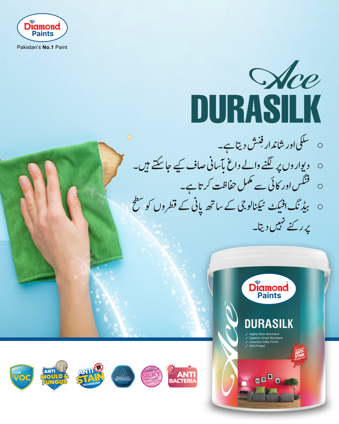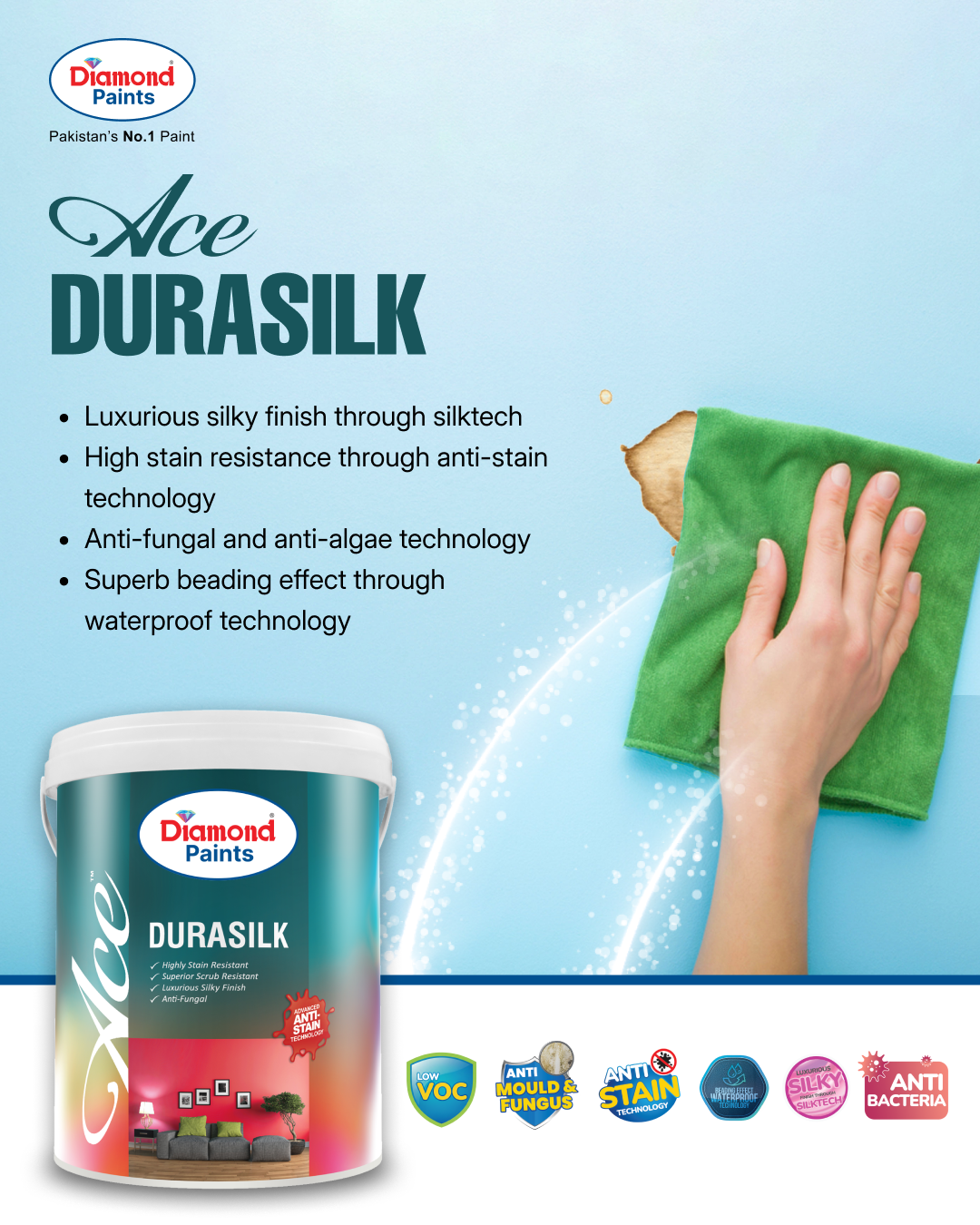 Diamond Ace Durasilk Emulsion is a premium quality special washable interior emulsion which provides a smooth & attractive luster finish.